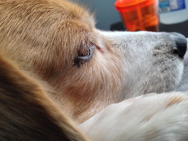 This shake has saved me during this time and kept my diet on the straight and narrow. That might sound silly but the emotional eater in me wants to eat cakes, cookies and basically anything that will push me off track. Being on several medications has left me with no appetite and I am sure you can imagine how hilariously difficult it is to eat lying on one’s side…even more so than typing! Being able to make this in a couple of minutes and return to bed has been extremely helpful for me. What is even more awesome than a quick and delicious way to get some healthy calories? Not much that I can think of, except for my buddy Sawyer who has been by my side the entire time to snuggle and keep a look out. I was lacking in pictures of this smoothie so I am going to brag on him instead.