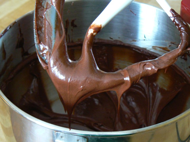You melt chocolate and butter together and then combine them with eggs. You whip it for 5 minutes, add the flour and sugar and you are done with the batter. I chose to add a little salt and vanilla to it after trying it a few times. It really deepens the chocolate flavor.