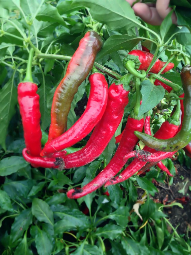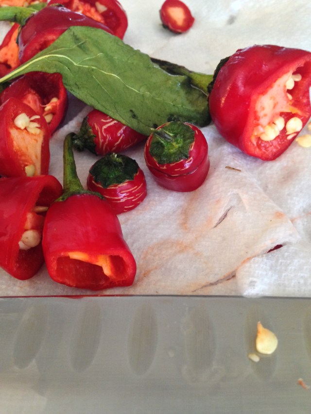 My aunt’s garden was full of different varieties but the cayenne and Thai chili peppers were the most bountiful so I grabbed several of those. I actually was not completely sure if the ones I thought were cayenne peppers were indeed those, but I am now almost certain after checking this great visual guide .