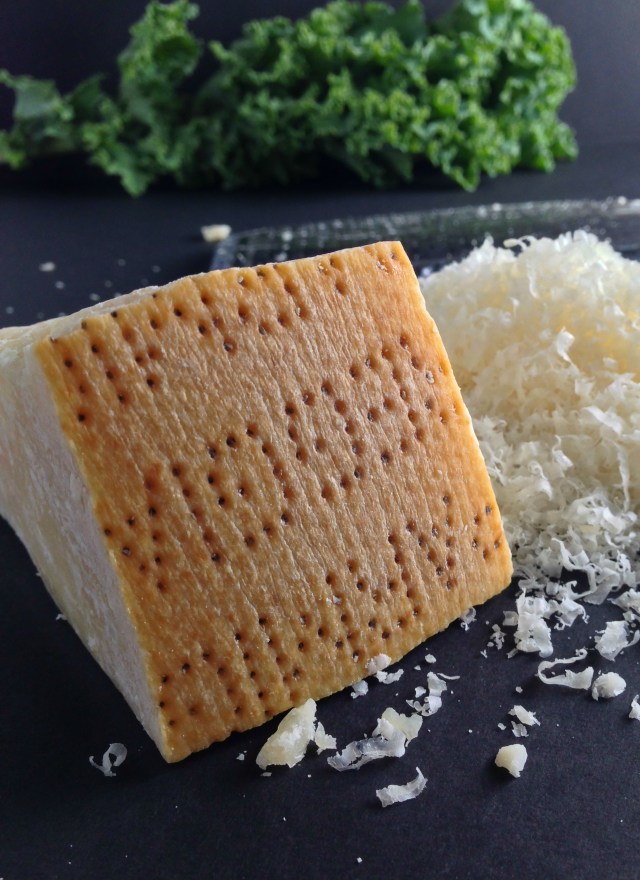 - In the bowl of a food processor, blend blanched kale, ricotta cheese, Parmesan cheese and garlic until smooth.