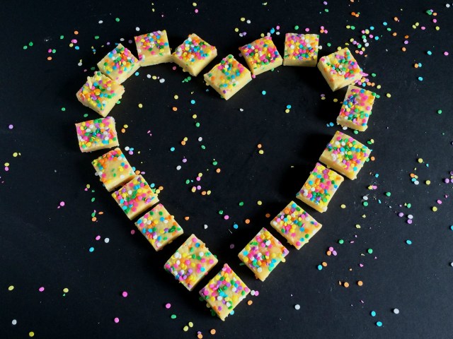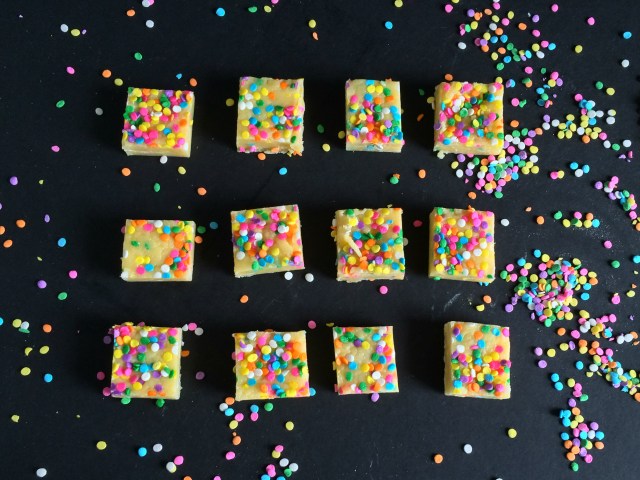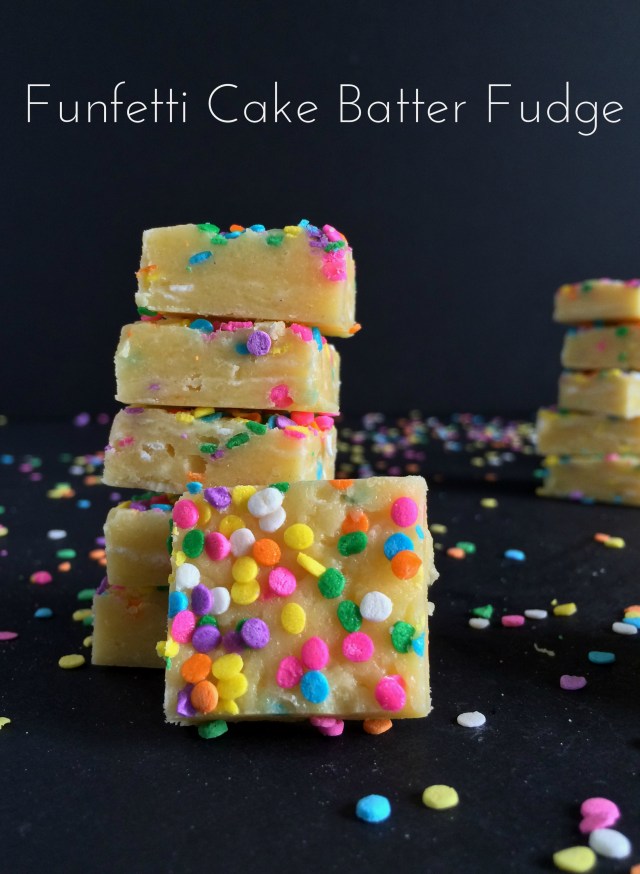 I live a few states away from my family so birthday celebrations are not really something we do. I could not help but think of her as soon as I started working on this recipe though. Basically, Jaqulyn is my mini-me so of course I knew she would love this fun cake batter fudge.