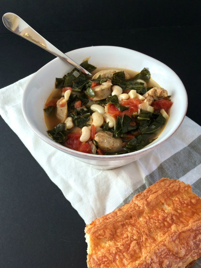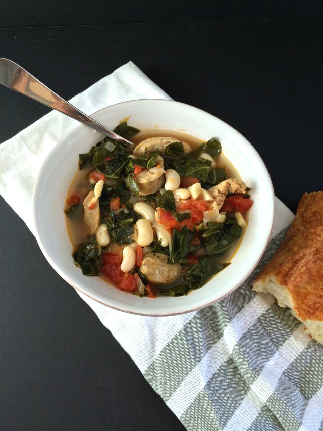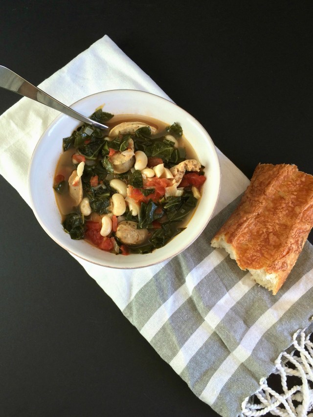 This hearty soup was born out of my weekly use-up-what’s-in-the-fridge attempt. I opened the fridge door and stared for a solid two minutes before sighing and contemplating pizza for dinner. My husband was home, we were both starving and pizza magically appeared at our door! Later that night while I was getting ready for bed I contemplated what I should do with the fresh cannellini beans and collard greens that were just sitting in the fridge waiting to be turned into something delicious.