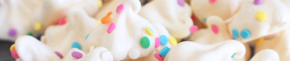 6. Transfer meringue into a piping bag fitted with desired tip and pipe onto sheet trays. If desired, apply quin style sprinkles.