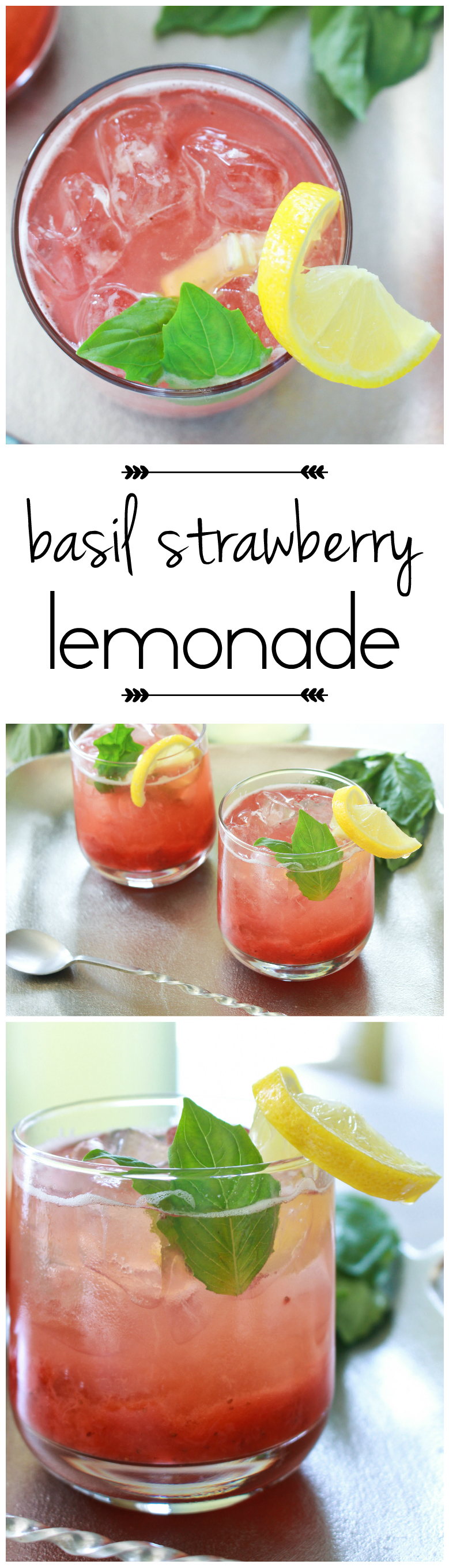 I carry around a huge water cup everywhere I go. My husband amusingly refers to it as my “little buddy” because I always have it. I am one of those few people who love drinking water and guzzle down the recommended amount (and then some) daily. It has been so stinking hot though these last few weeks and the humidity has been slowly killing me. When it is so hot I do not even want to leave the house sometimes water does not do the trick and I crave an ice cold glass of lemonade. I have really had a love affair with strawberry lemonade lately and pairing it with fresh basil gives it such a refreshing twist.