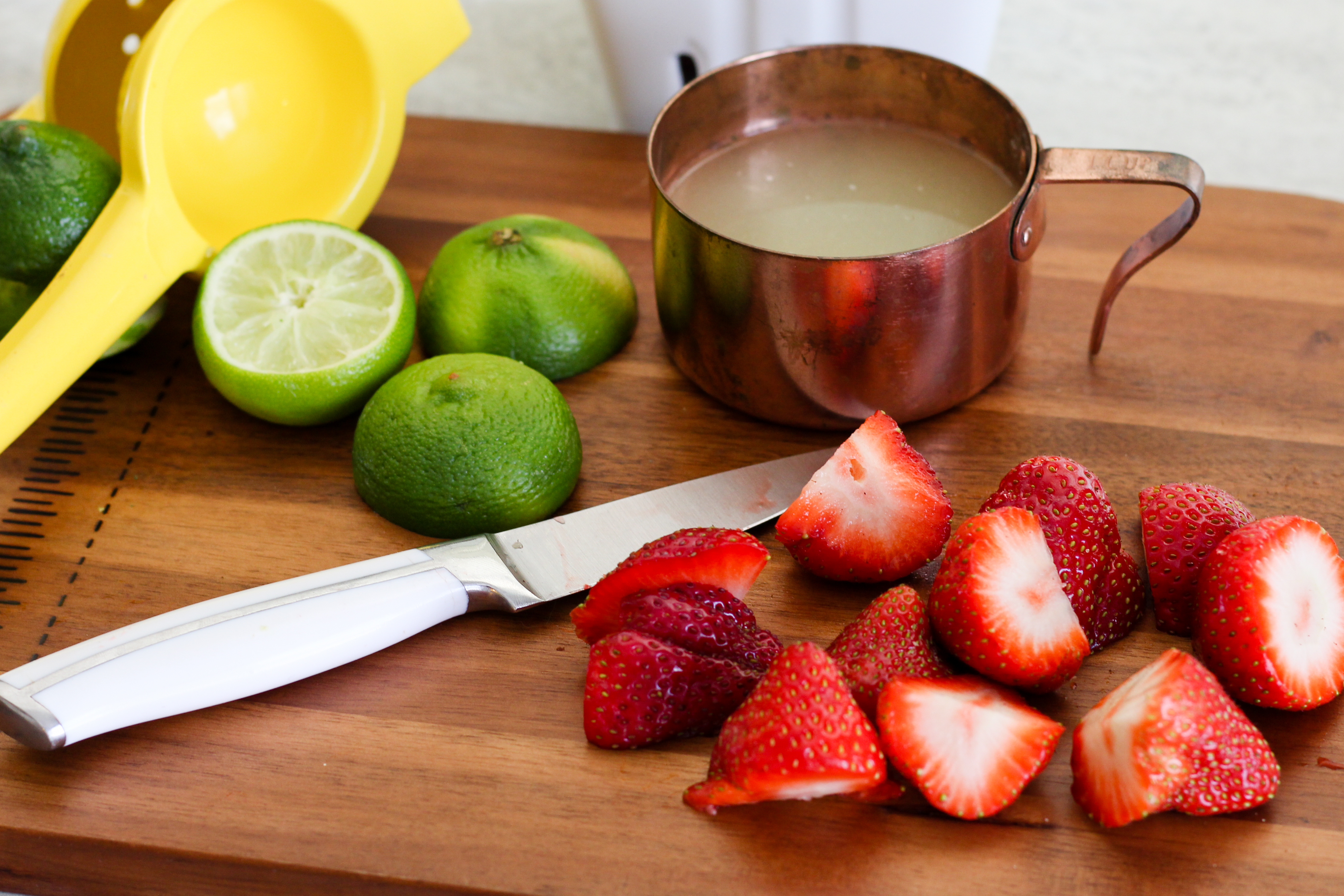 10. To make the sauce, add the strawberries, lime juice and water into a blender and blend until smooth.