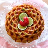 Your cake has me wanting to run out and pick up a bundt pan just like that – it’s the Jubilee, right? Congratulations to your friends, and what a lovely way to incorporate strawberries into this cake.