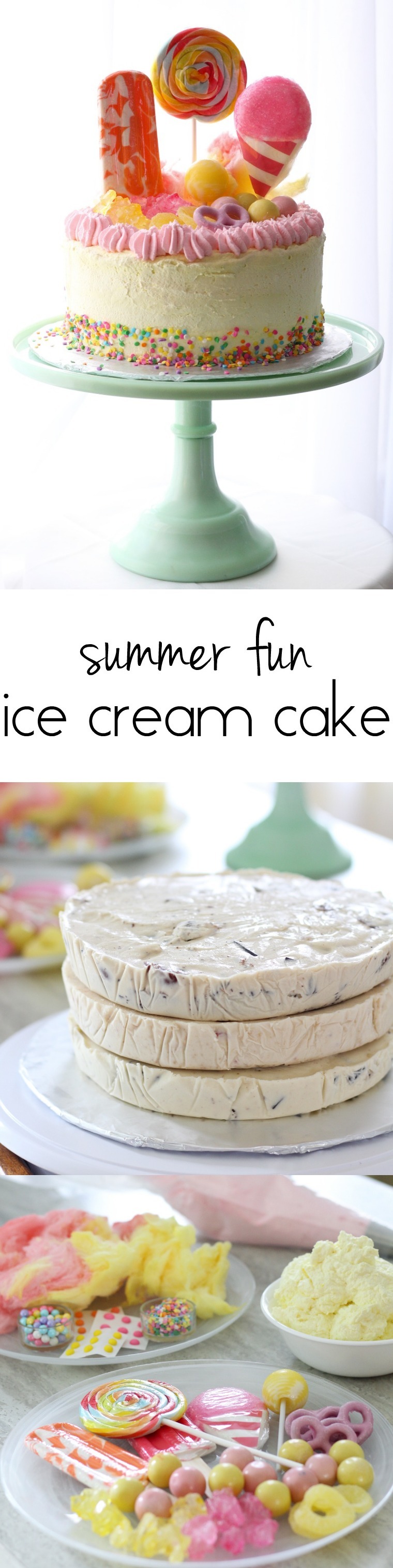 I made this ice cream cake for my friend’s grandmother who was turning 70. In the middle of summer a fun, refreshing cake seemed like the perfect way to celebrate!