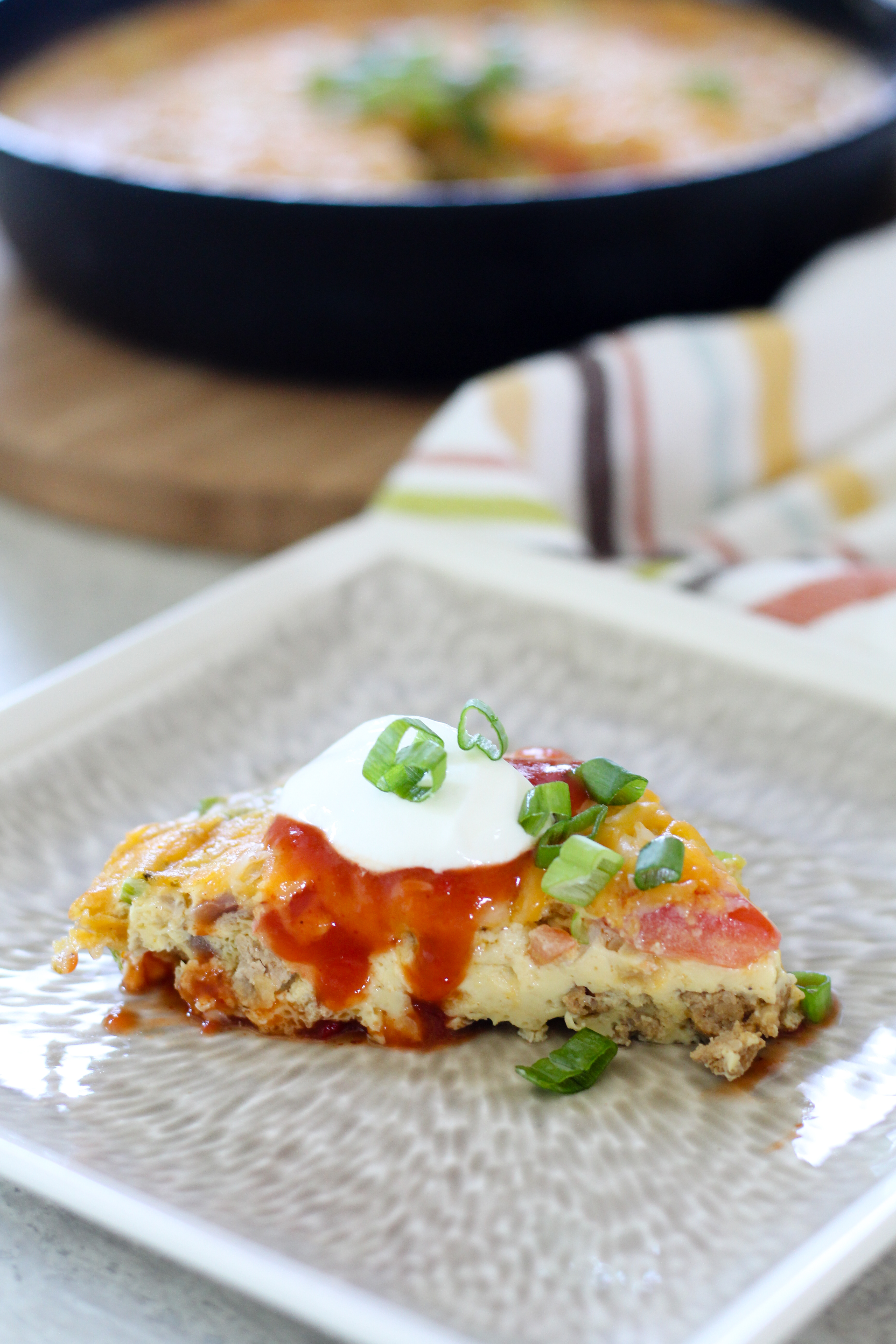 I topped mine with a little sour cream, taco sauce and extra green onions. When I ate a leftover slice I topped it with a little shredded lettuce too, which made a great refreshing bite to it. What is your favorite way to make frittatas?