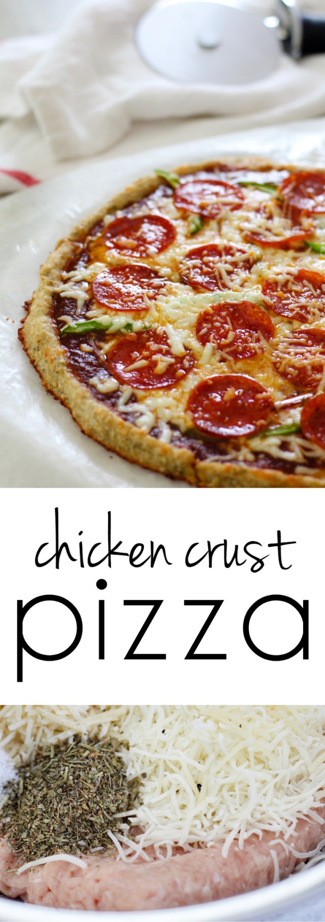 There are tons of low carb pizza crusts out there and cauliflower seems to take the cake. The problem with that though is that it has no protein and as any bariatric patient will tell you, that is a mortal sin. All joking aside, eating a slice of cauliflower crust pizza fills that pouch up with hardly any protein. Enter chicken crust pizza! I’ve had several friends and family members try my various chicken crust variations over the pat few months. Unanimously they all said it was really good, but it wasn’t the same as traditional crust. That I agreed with, but I’ve come to accept that there are just some things that will never be the same with this lifestyle change. This satisfies my pizza cravings and makes me feel good about the food choices I made. That is a win in my book!